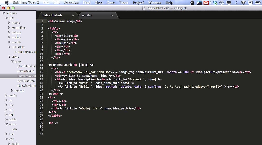 On Friday started first edition of Rails Girls Ljubljana, a workshop about Ruby on Rails. After Friday’s installation party, on Saturday started the real fun. Checking on css, html and “the real code” again, reminded me, what was the most exciting and fun part of my job in the web industry – playing in the lines, playing with the code!